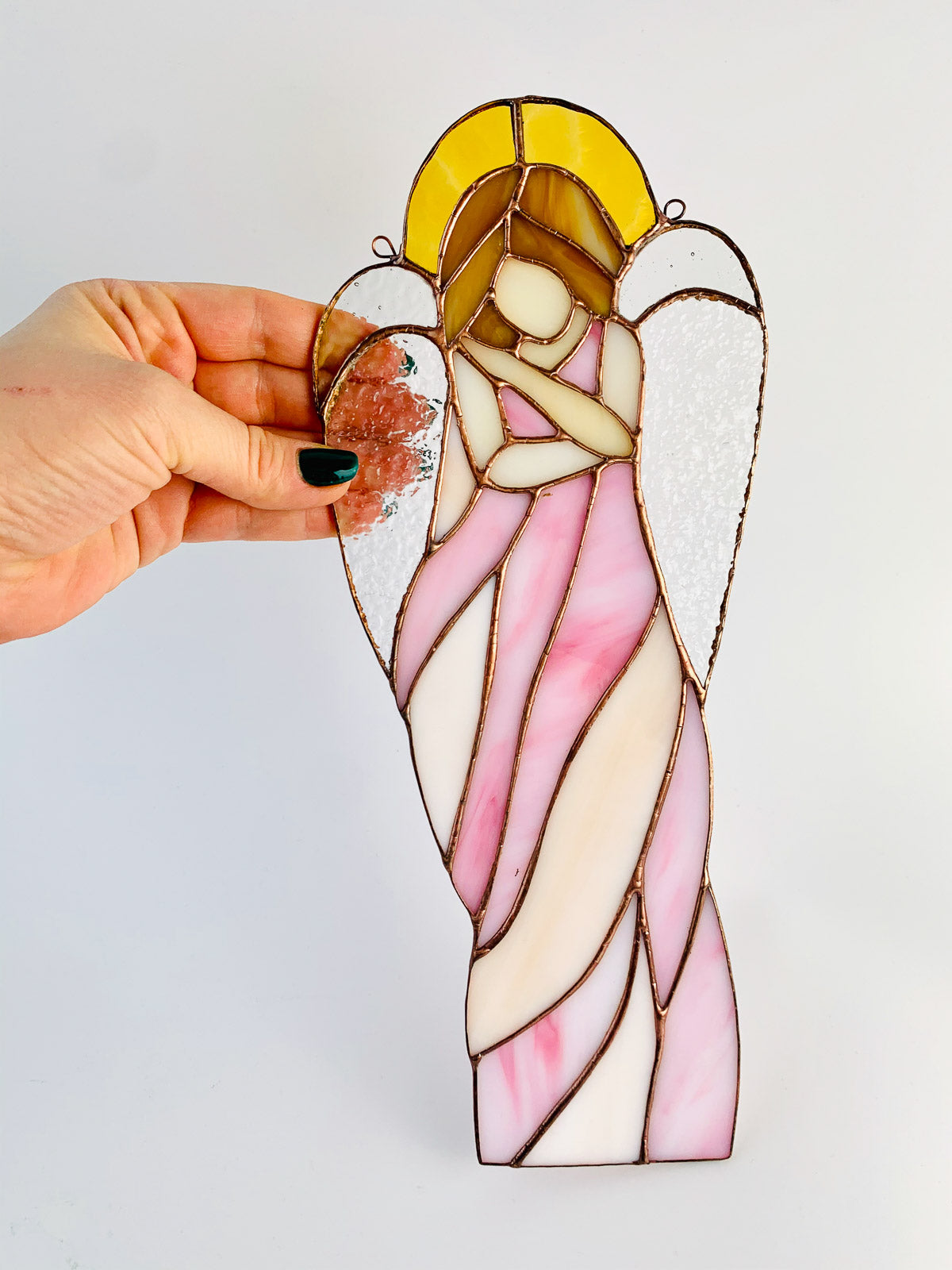 Ten witrażowy anioł jest symbolem opieki i wsparcia, doskonałym prezentem dla bliskich lub ozdobą do Twojego własnego domu. Jego piękny design emanuje spokojem i harmonią, co sprawia, że idealnie pasuje do każdego wnętrza.To nie tylko ozdoba, to także przesłanie o opiece i dobroci, które możesz przekazać sobie lub bliskim. Zamów teraz ten witrażowy anioł opieki i dodaj niebiański akcent do swojego życia!