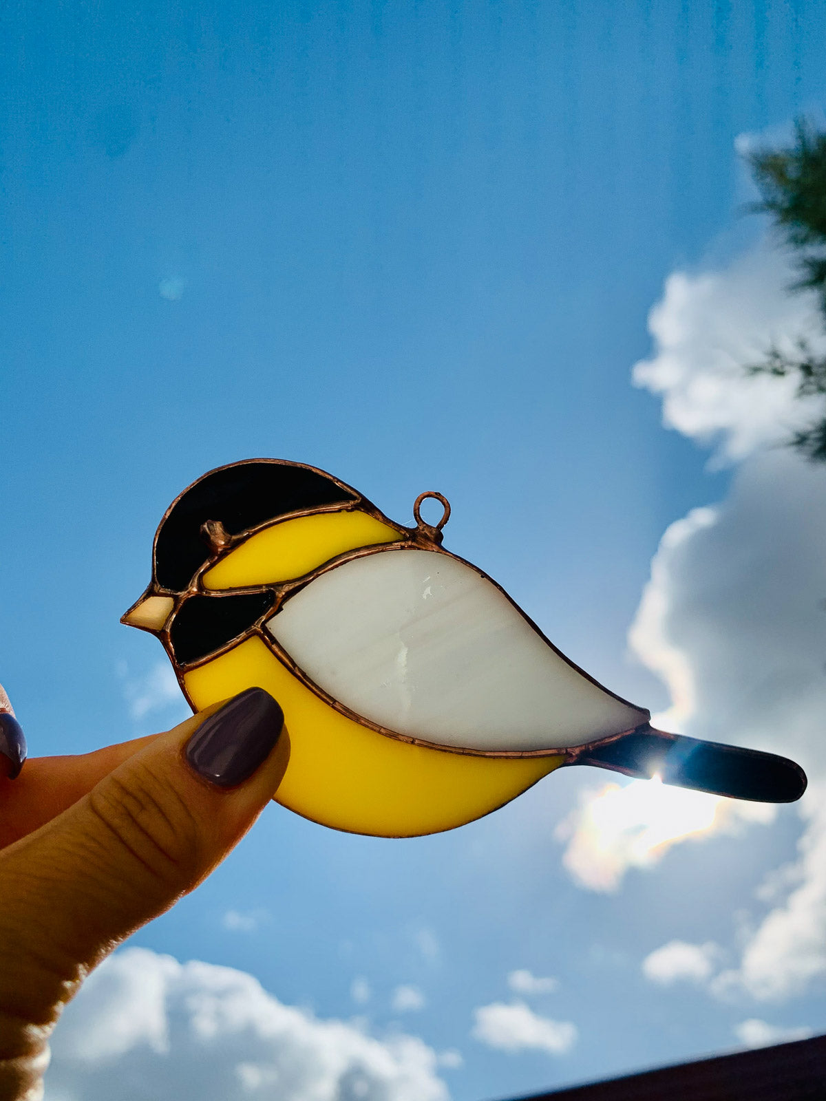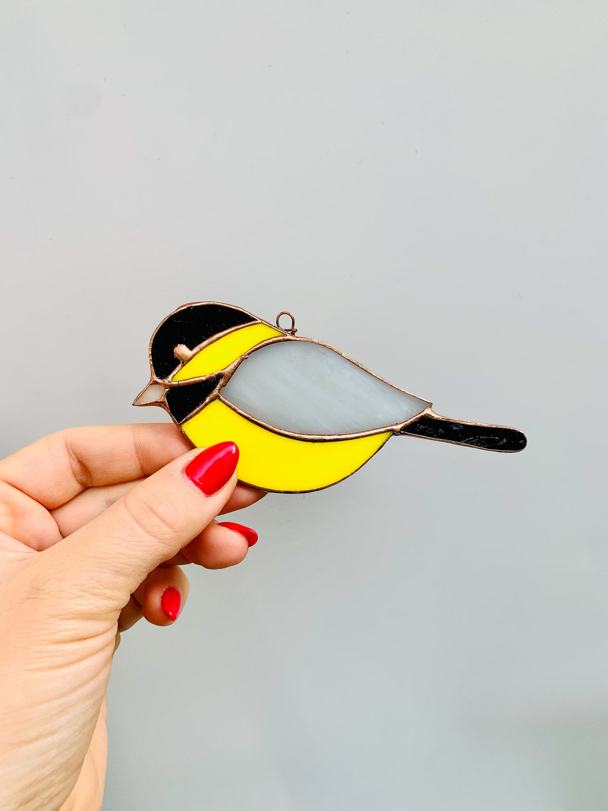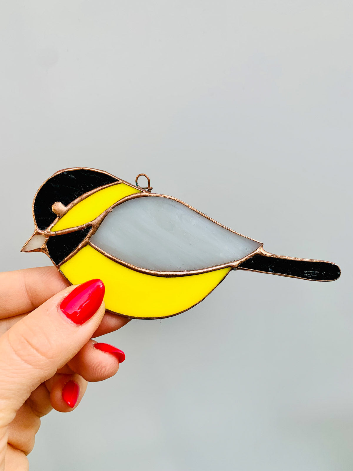 Piękna witrażowa zawieszka ptaszek wykonana ze szkła witrażowego najwyższej jakości metodą Tiffany. Ptaszek gotowy do zawieszenia.Wymiary ok.12 cm x 6 cm.Cena za 1 szt.
