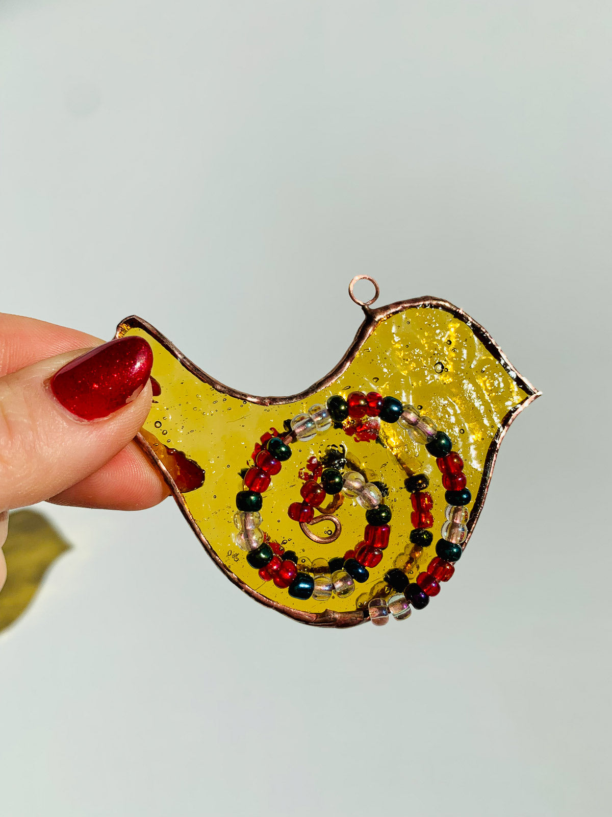 Ten uroczy witraż w kształcie ptaszka to wspaniała ozdoba, która z pewnością przyciągnie uwagę każdego miłośnika ręcznie robionych przedmiotów.Jeśli szukasz pięknej i unikalnej dekoracji, która ożywi Twoje wnętrze, ten ptak witrażowy jest idealnym wyborem dla Ciebie.Dodaj swojemu domowi wyjątkowy akcent i ciesz się pięknem tej oryginalnej ozdoby. Zapraszamy do zakupu naszych witrażowych ozdób i odkrycia magii szkła w swoim domu.