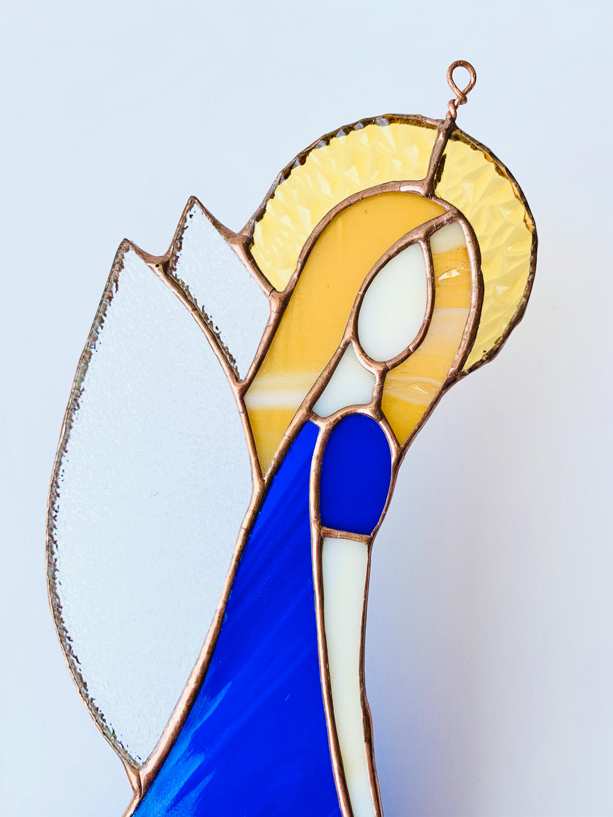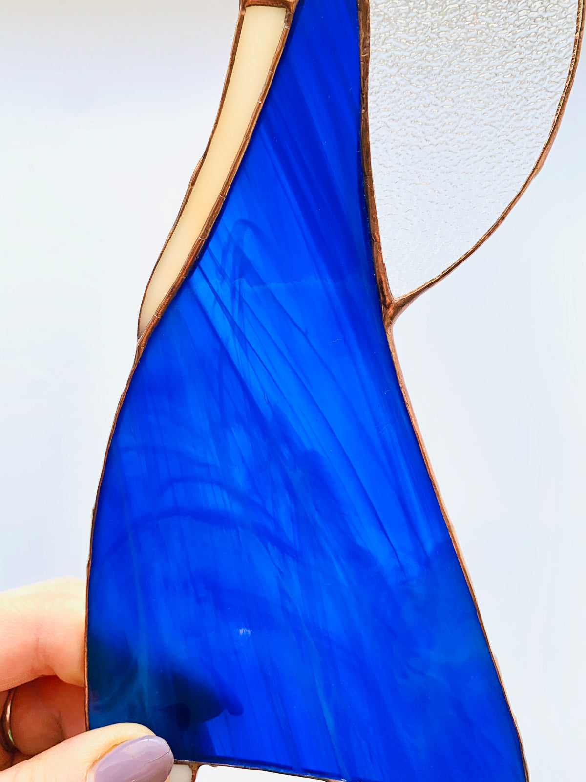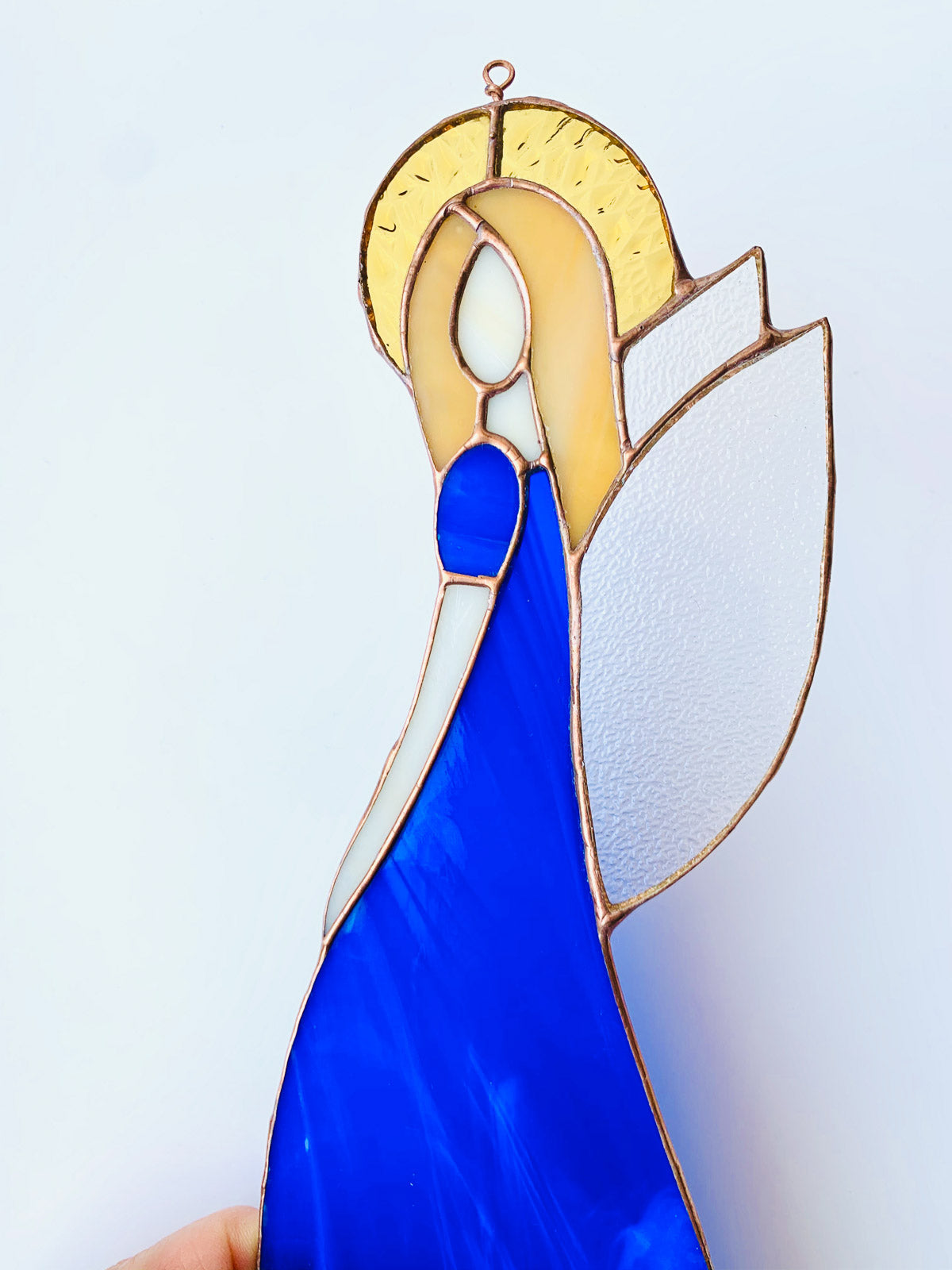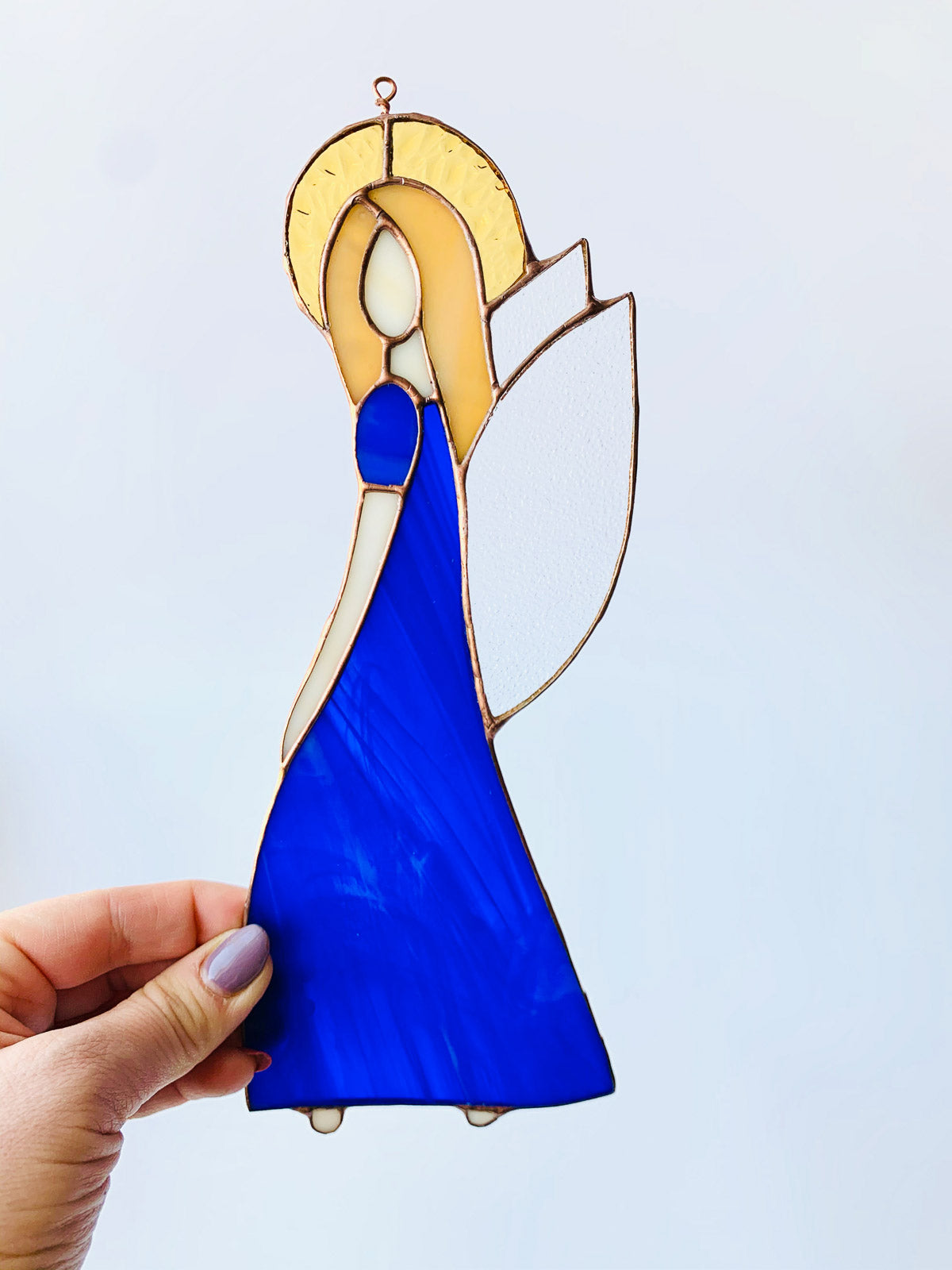 Anioł gracji nie tylko zachwyca swoim pięknem, ale także przypomina nam o potrzebie łagodności i delikatności w naszym codziennym życiu. To także wspaniały prezent dla tych, którym chcemy podarować trochę spokoju i harmonii. Niech anioł gracji stanie się Twoim przewodnikiem w odkrywaniu piękna i spokoju w otaczającym nas świecie.Ten mistyczny witraż w kształcie anioła  to nie tylko dekoracja, to również wyraz artystycznej pasji i dedykacji dla sztuki ręcznej pracy. Niech to dzieło stanie się pięknym akcentem w Twoim domu, przypominając Ci o magii, która tkwi w rękodziele. Niech ten anioł  chroni i inspiruje Cię każdego dnia.
