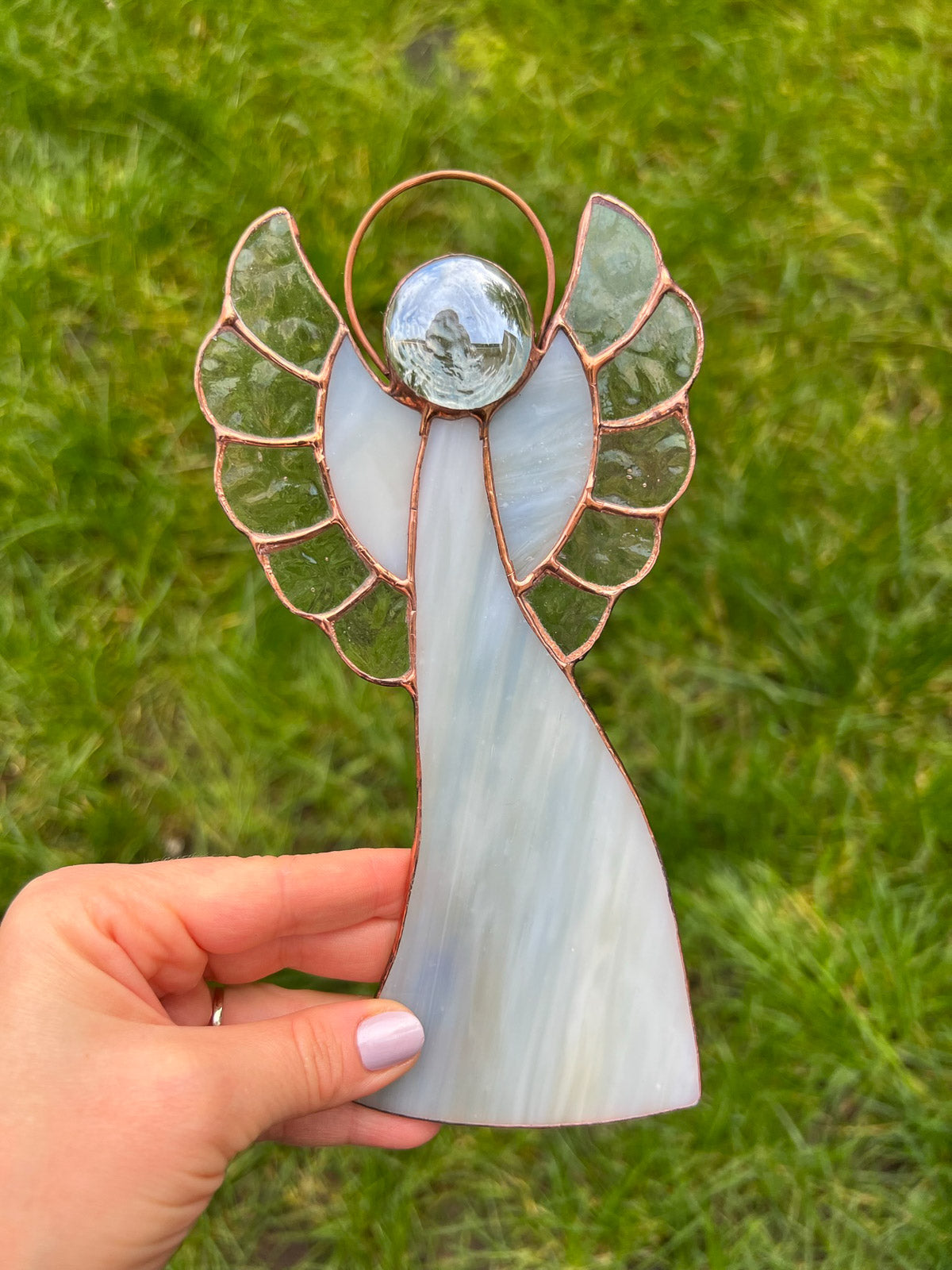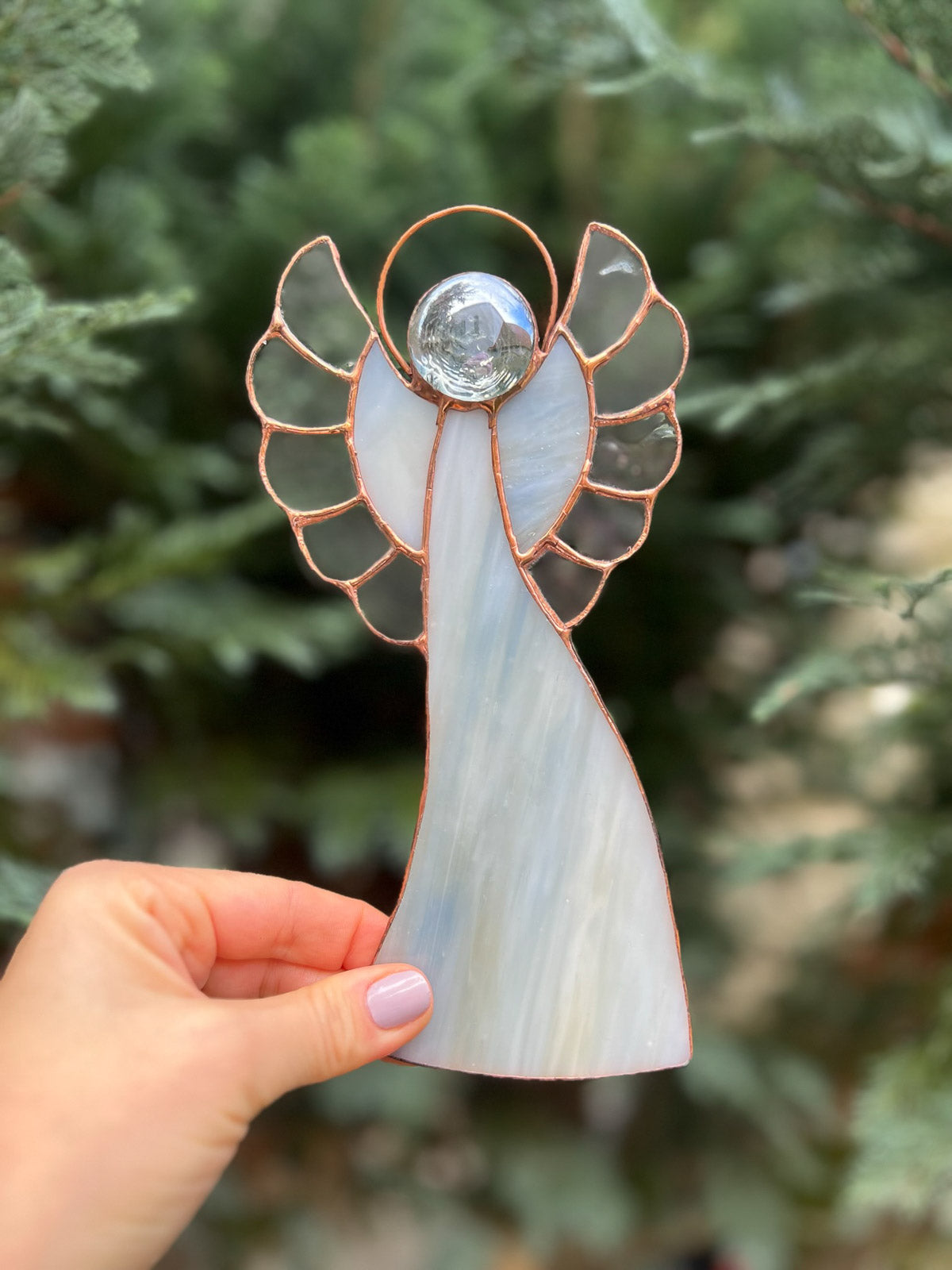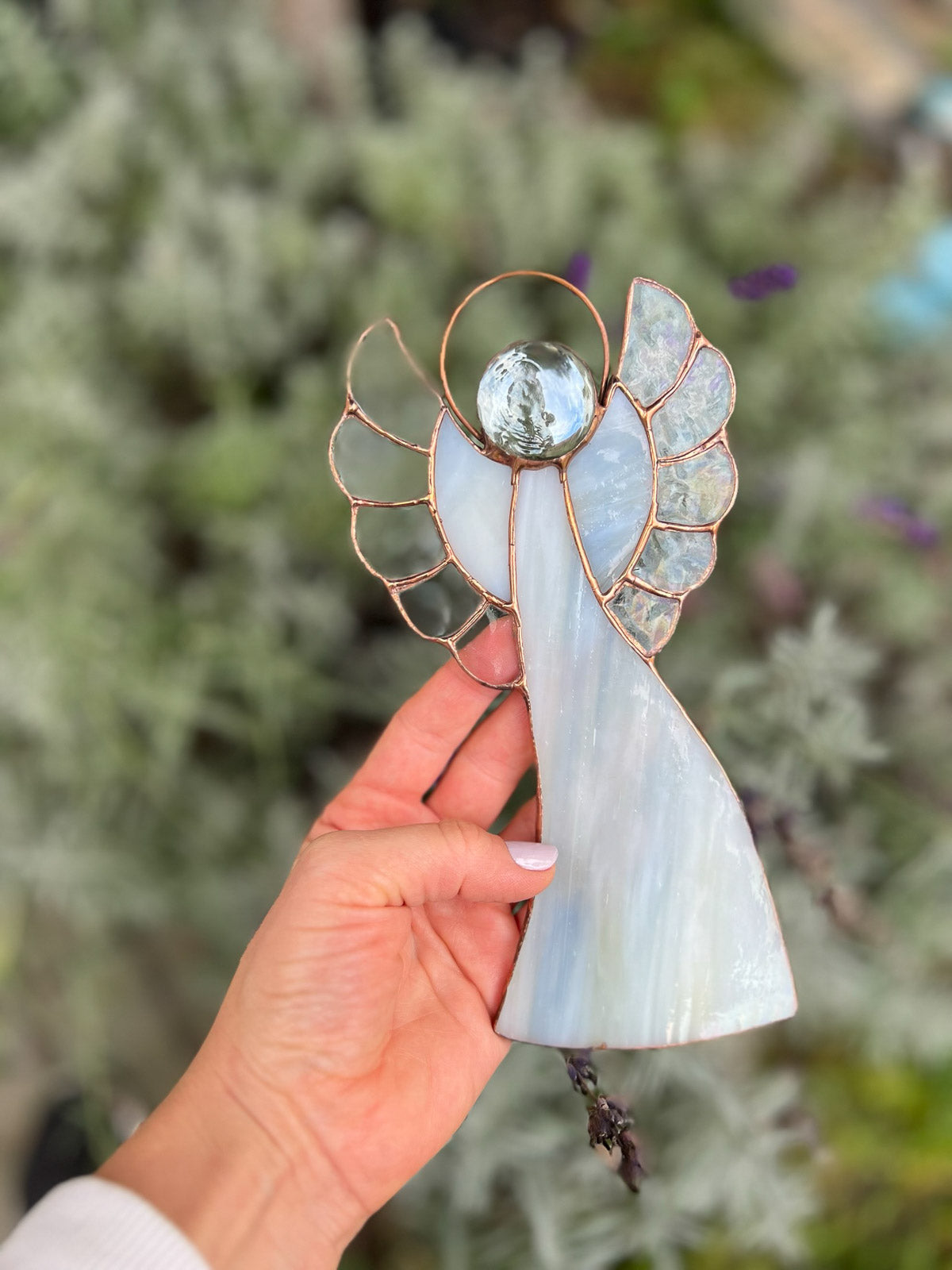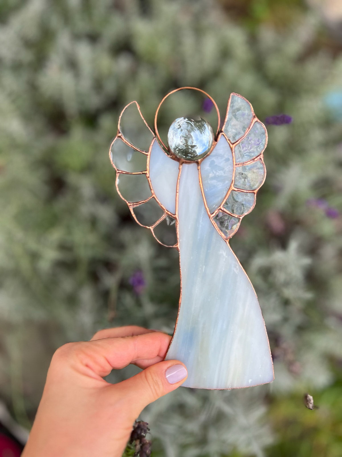 Przedstawiamy naszego witrażowego anioła pięknej i pełnej harmonii ozdoby, która doda uroku i spokoju Twojemu wnętrzu. Wykonany z pasją i starannością w naszej rodzinnej pracowni, ten witrażowy anioł to wyjątkowy symbol delikatności i piękna.Anioł nie tylko zachwyca swoim pięknem, ale także przypomina nam o potrzebie łagodności i delikatności w naszym codziennym życiu. To także wspaniały prezent dla tych, którym chcemy podarować trochę spokoju i harmonii. Niech anioł gracji stanie się Twoim przewodnikiem w odkrywaniu piękna i spokoju w otaczającym nas świecie.Ten mistyczny witraż w kształcie anioła to nie tylko dekoracja, to również wyraz artystycznej pasji i dedykacji dla sztuki ręcznej pracy. Niech to dzieło stanie się pięknym akcentem w Twoim domu, przypominając Ci o magii, która tkwi w rękodziele. Niech ten anioł chroni i inspiruje Cię każdego dnia.
