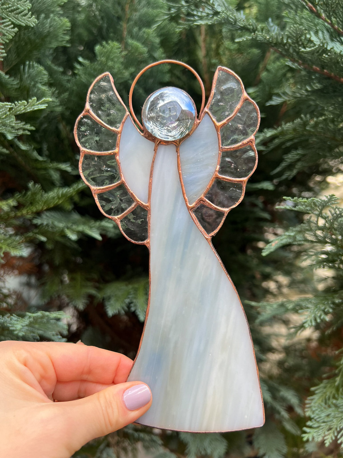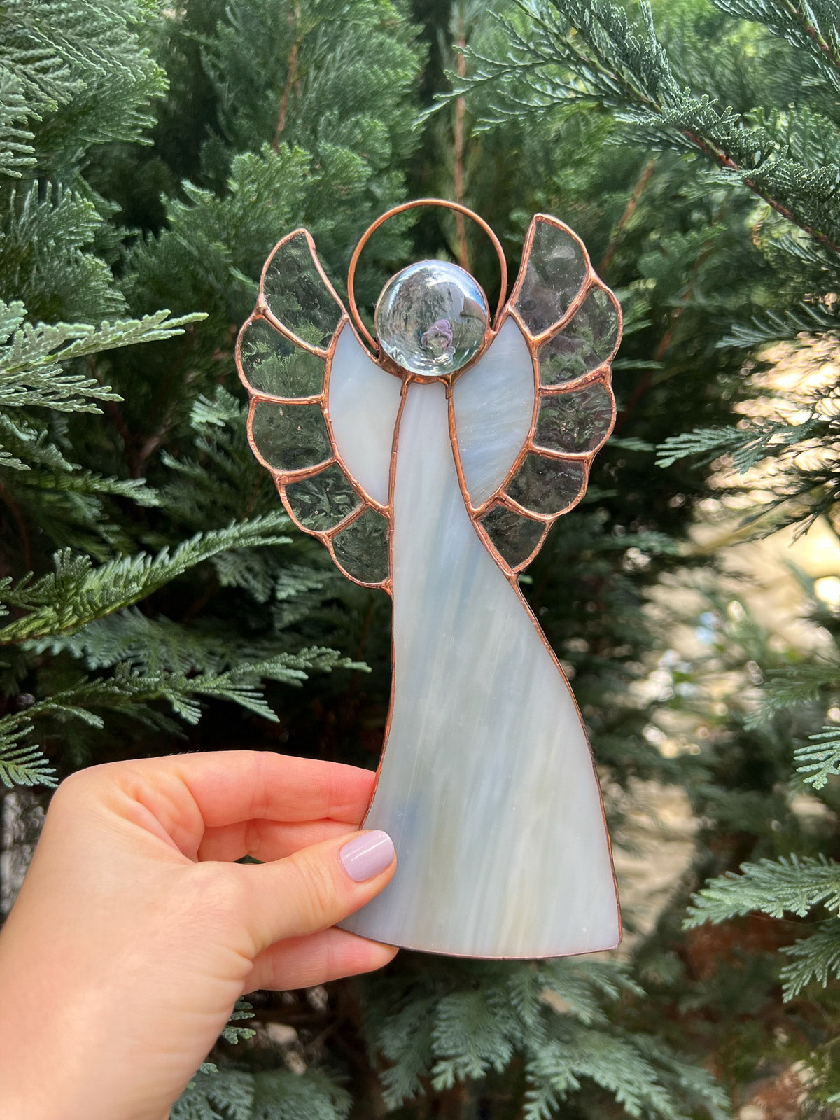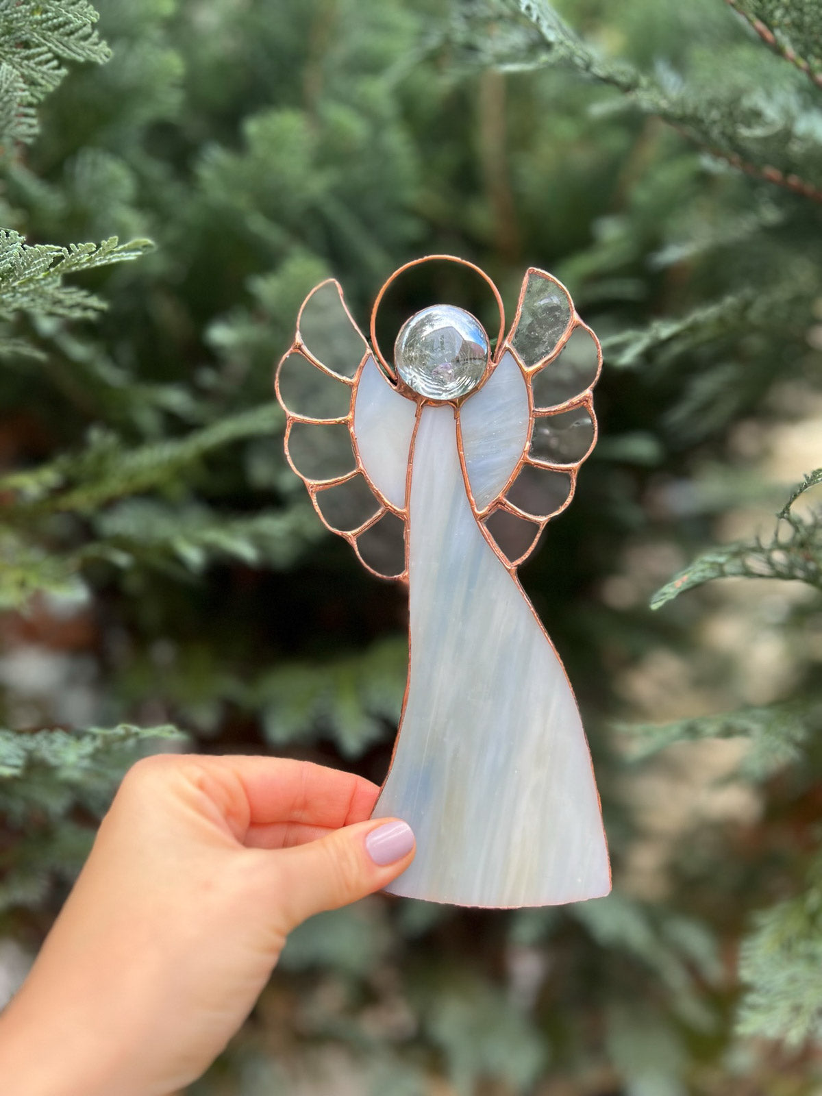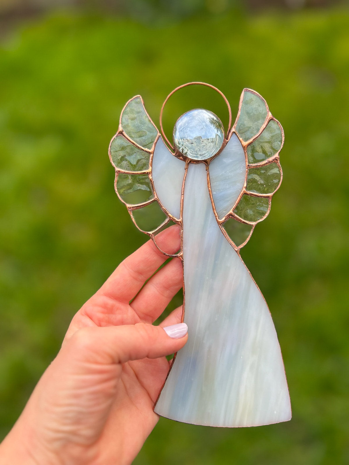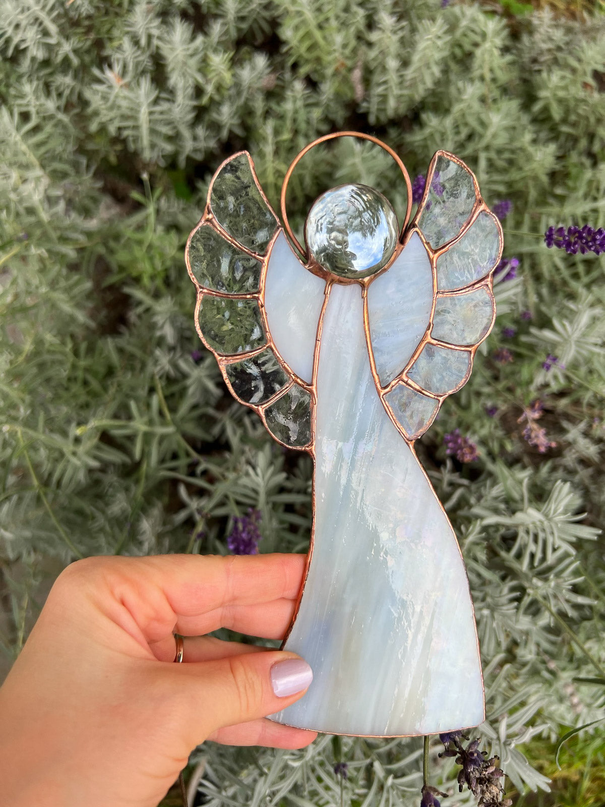 Przedstawiamy naszego witrażowego anioła pięknej i pełnej harmonii ozdoby, która doda uroku i spokoju Twojemu wnętrzu. Wykonany z pasją i starannością w naszej rodzinnej pracowni, ten witrażowy anioł to wyjątkowy symbol delikatności i piękna.Anioł nie tylko zachwyca swoim pięknem, ale także przypomina nam o potrzebie łagodności i delikatności w naszym codziennym życiu. To także wspaniały prezent dla tych, którym chcemy podarować trochę spokoju i harmonii. Niech anioł gracji stanie się Twoim przewodnikiem w odkrywaniu piękna i spokoju w otaczającym nas świecie.Ten mistyczny witraż w kształcie anioła to nie tylko dekoracja, to również wyraz artystycznej pasji i dedykacji dla sztuki ręcznej pracy. Niech to dzieło stanie się pięknym akcentem w Twoim domu, przypominając Ci o magii, która tkwi w rękodziele. Niech ten anioł chroni i inspiruje Cię każdego dnia.