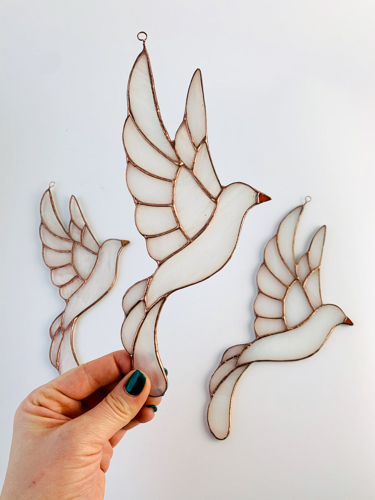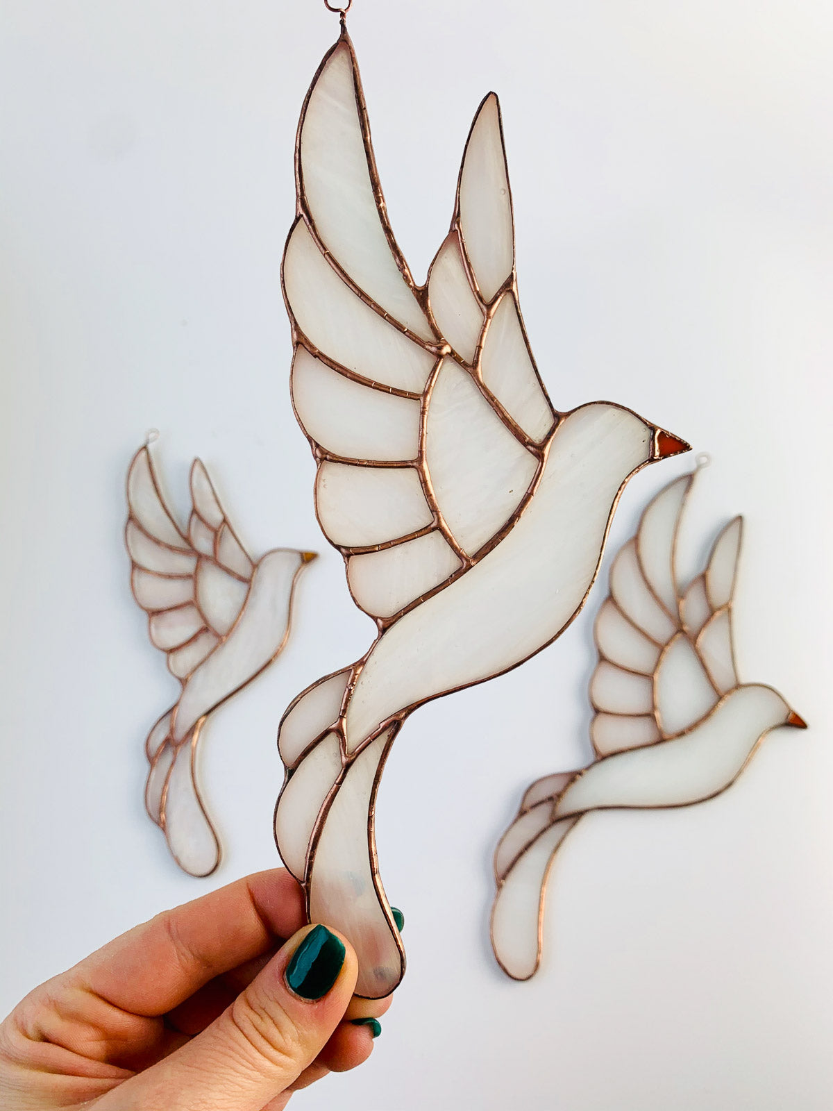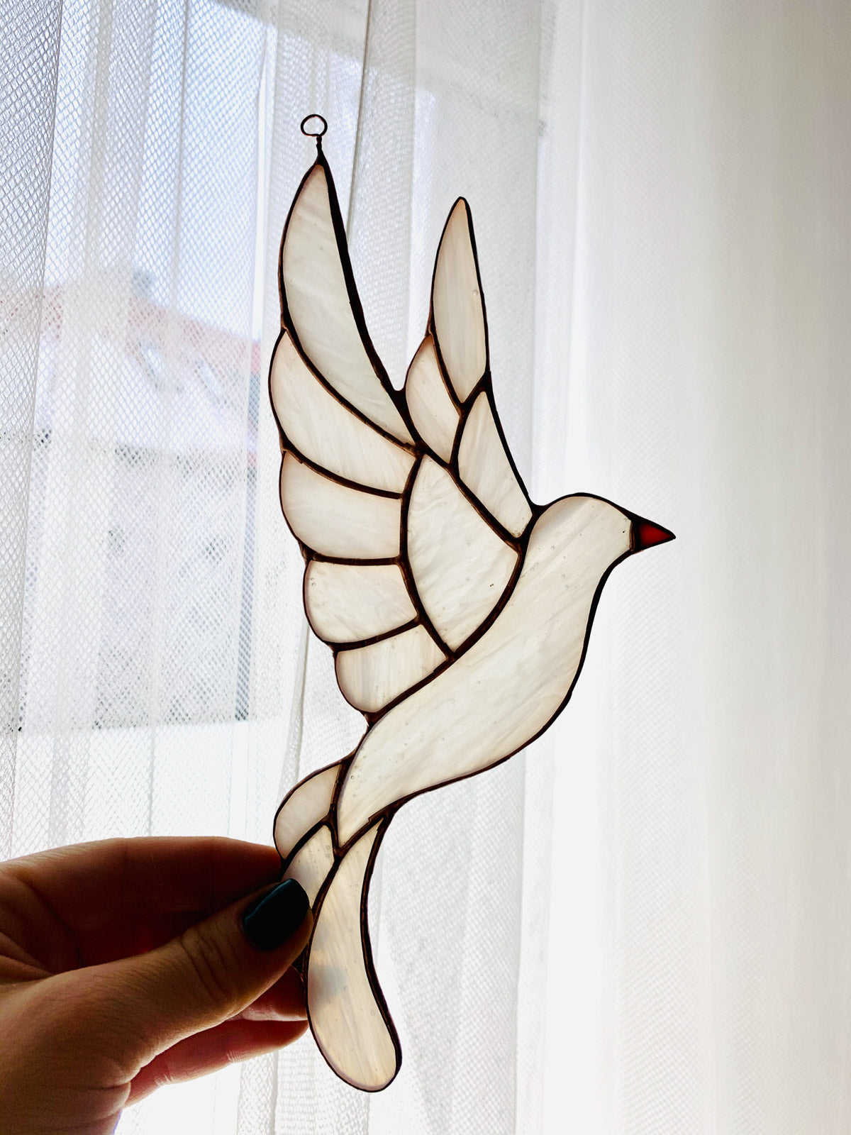 Biały ptak symbolizuje czystość, harmonię i wolność, co czyni tę ozdobę idealnym prezentem dla każdego, kto ceni sobie te wartości. Będzie pięknie wyglądał w pokoju dziecięcym, sypialni czy salonie, a jego delikatny urok z pewnością ożywi każde wnętrze. Wybierz ten witraż, aby dodać elegancji i artystycznego wdzięku do swojego domu.Jeśli szukasz pięknej i unikalnej dekoracji, która ożywi Twoje wnętrze, ten ptak witrażowy jest idealnym wyborem dla Ciebie. Dodaj swojemu domowi wyjątkowy akcent i ciesz się pięknem tej oryginalnej ozdoby. Zapraszamy do zakupu naszych witrażowych ozdób i odkrycia magii szkła w swoim domu.