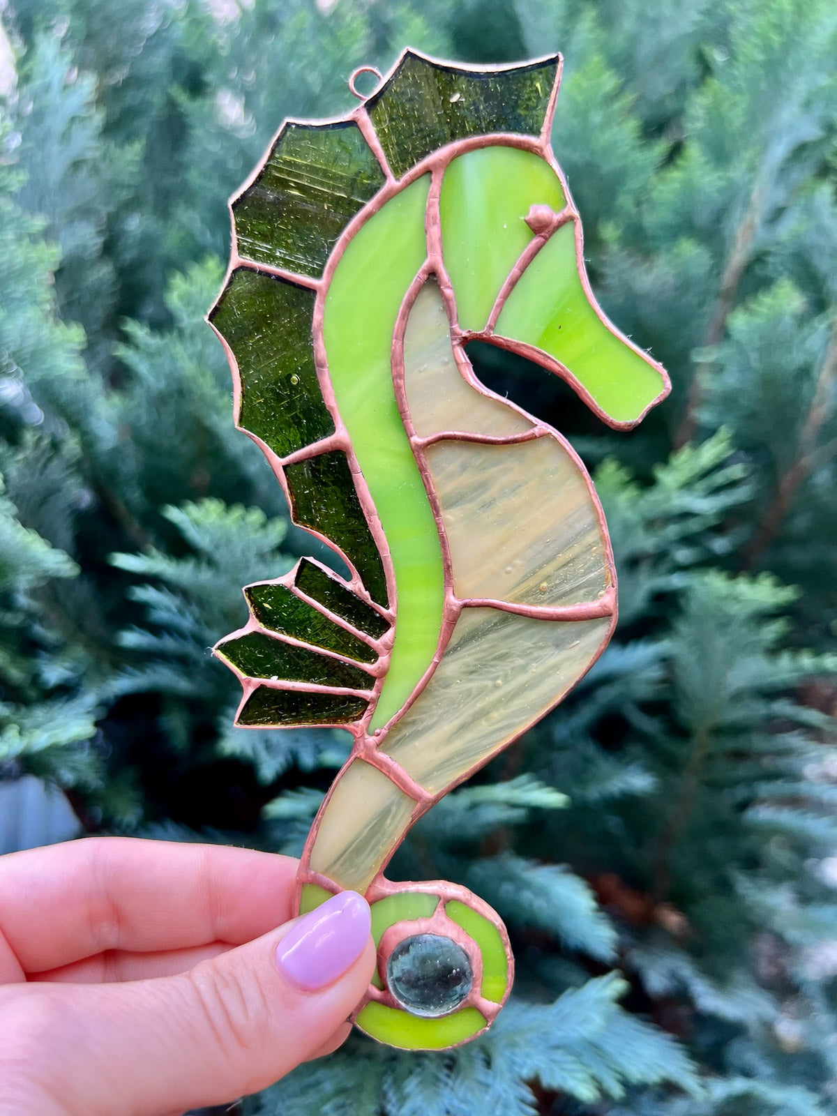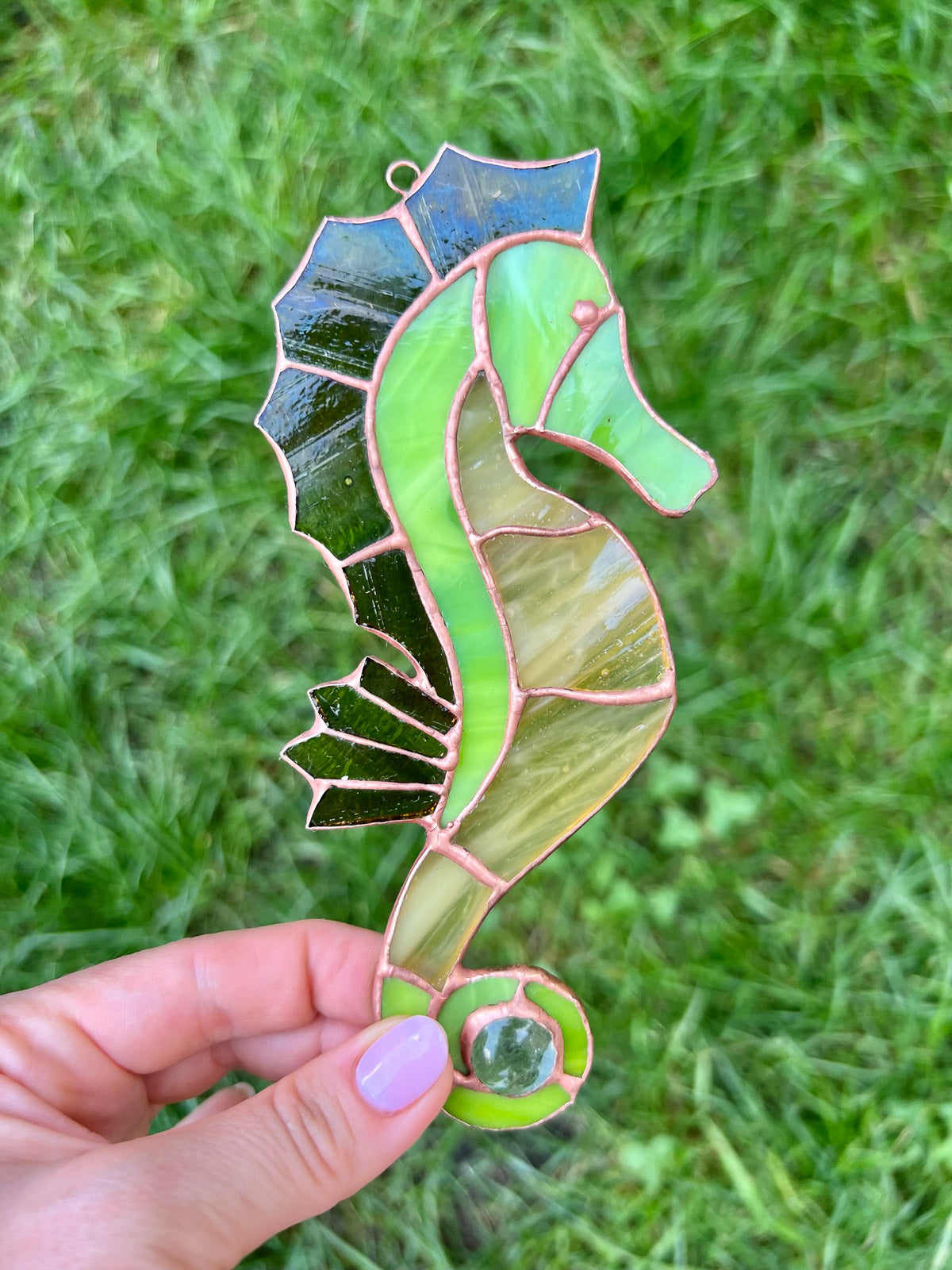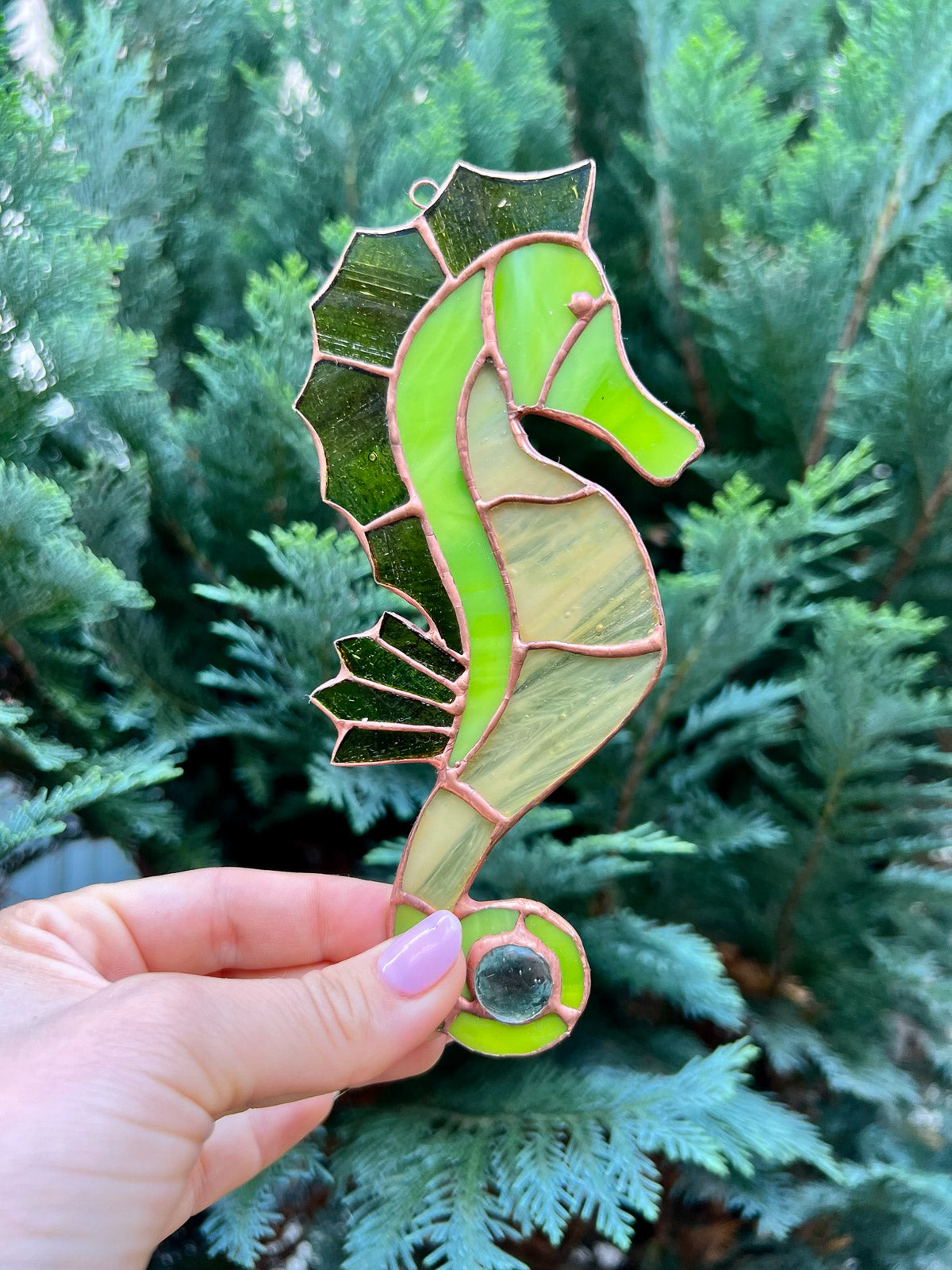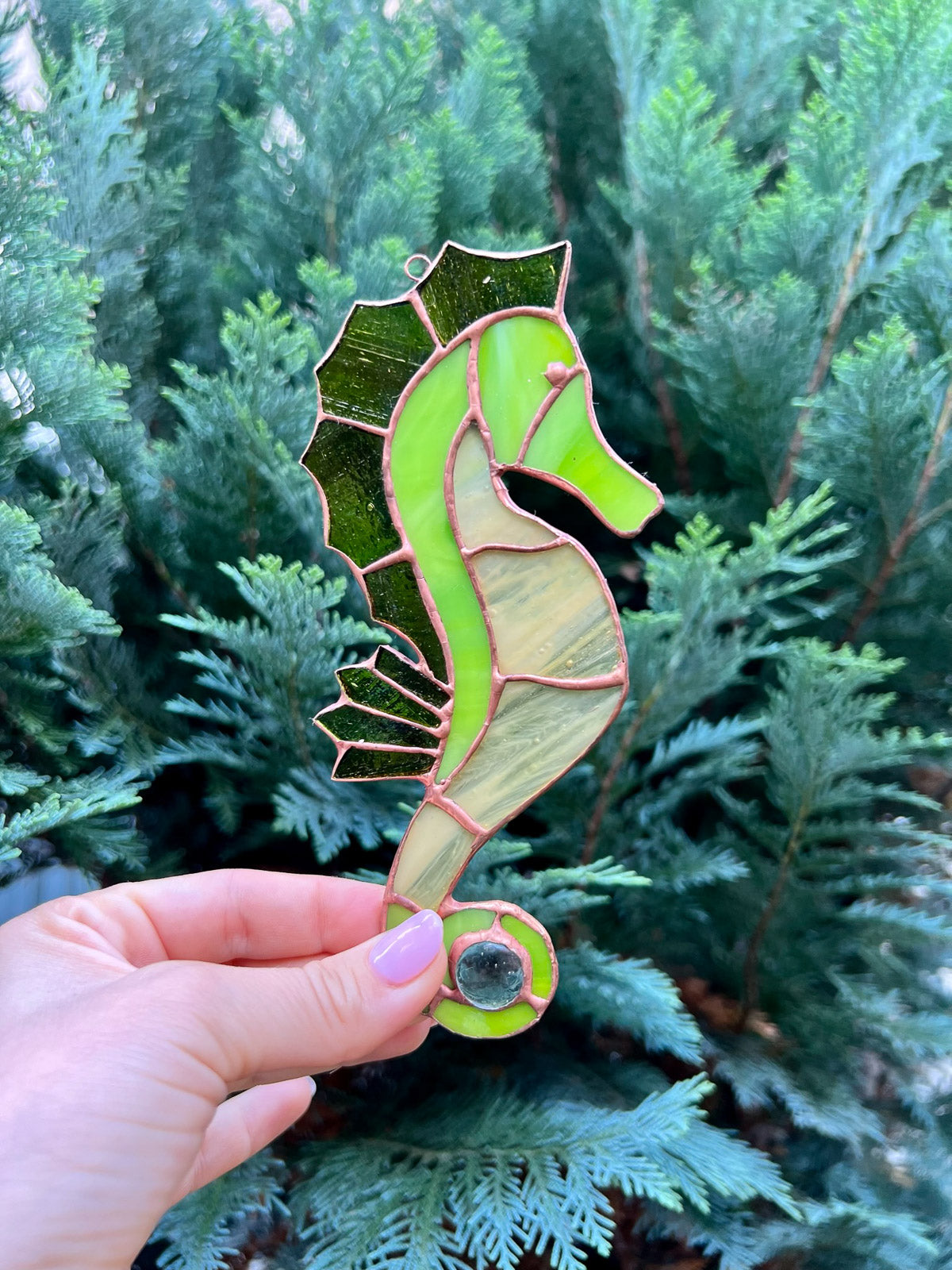 Każdy detal, od delikatnych kształtów konika morskiego po bogate kolory i wzory, tworzy wrażenie, że jesteś pod wodą, odkrywając piękno oceanicznych głębin. To nie tylko dekoracja, to podróż do magicznego świata podwodnego.To nie tylko ozdoba, to także sposób na wyrażenie swojej miłości do morza i fascynacji światem podwodnym. Umieść tę zawieszkę w swoim domu i pozwól jej przypominać Cię o pięknie i spokoju, który można znaleźć w naturze.Nie tylko możesz cieszyć się pięknem tej zawieszki samodzielnie, ale również możesz podarować ją jako wyjątkowy prezent. Niezależnie od okazji - urodzin, rocznicy czy innego ważnego wydarzenia - ta ręcznie wykonana zawieszka witrażowa z pewnością okaże się niezapomnianym upominkiem dla osób ceniących sztukę i unikalne przedmioty.