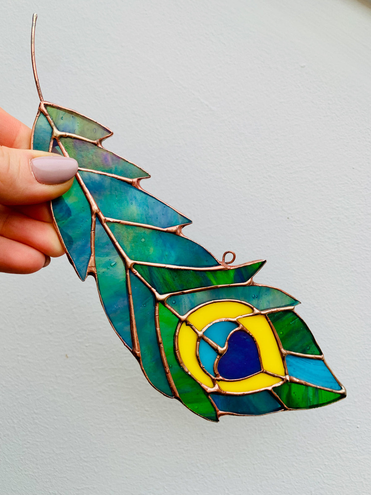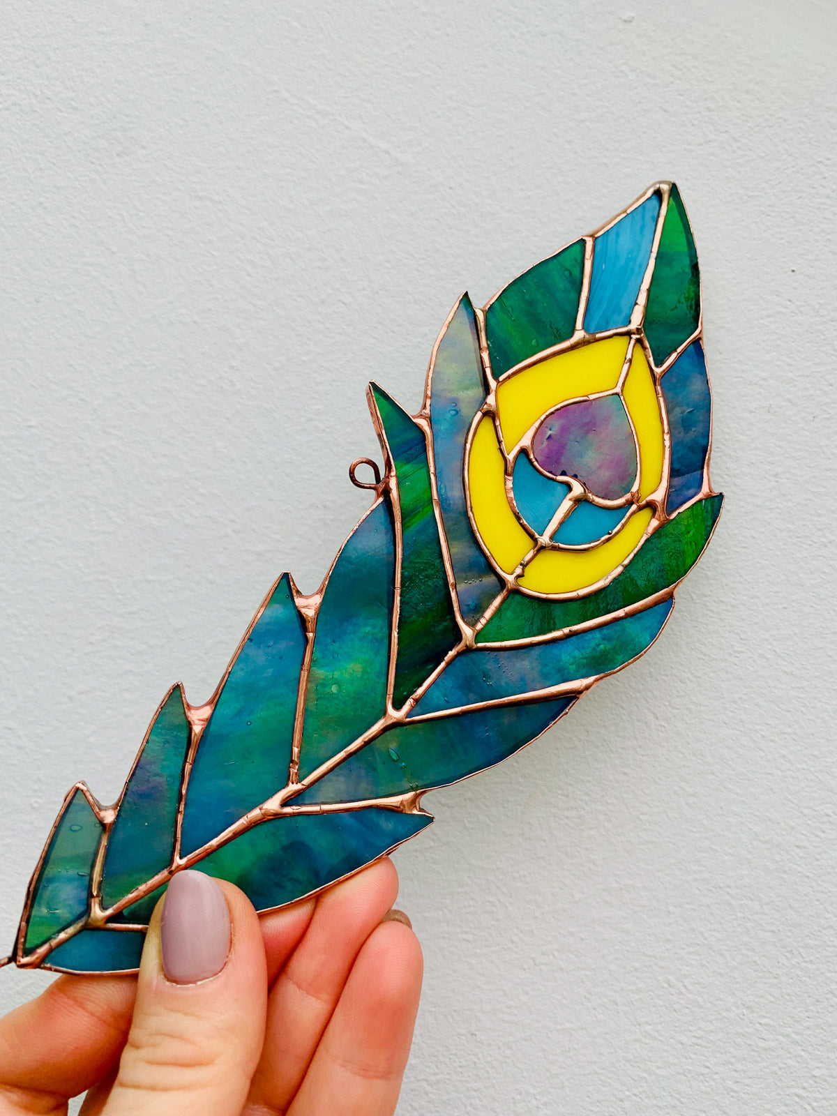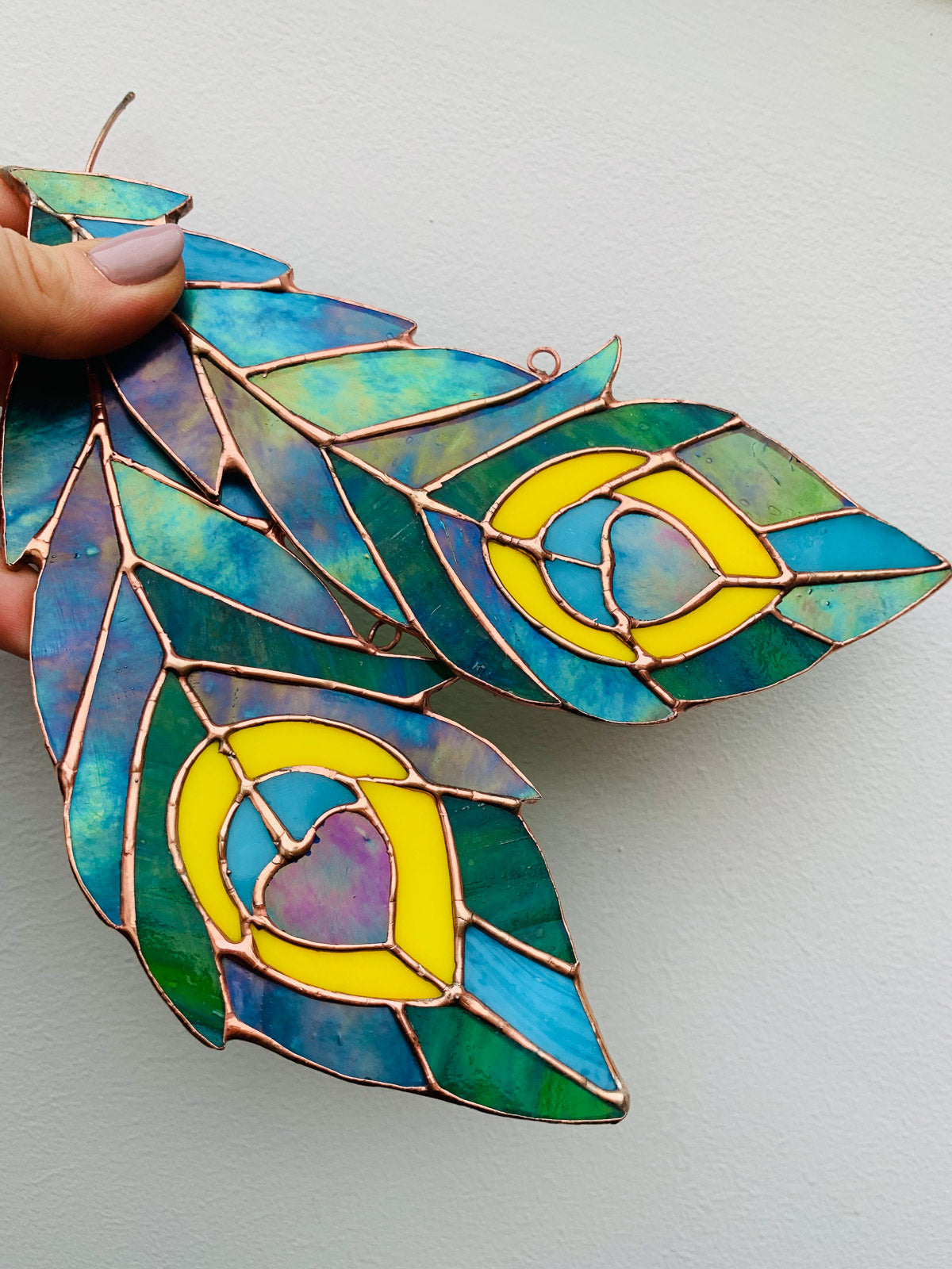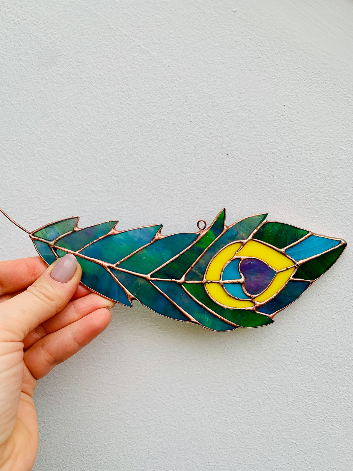 Zawieszka piórko jest lekka i delikatna, a jednocześnie bardzo trwała dzięki solidnemu wykonaniu. Można ją powiesić na przezroczystej żyłce, którą dołączamy do dekoracji.W wielu kulturach pióra pawia uważane są za symbole ochrony, władzy i dostatku.Jeśli szukasz pięknej i unikalnej dekoracji, która ożywi Twoje wnętrze, to piórko witrażowe jest idealnym wyborem dla Ciebie.Zapraszamy do zakupu naszych witrażowych ozdób i odkrycia magii szkła w swoim domu.