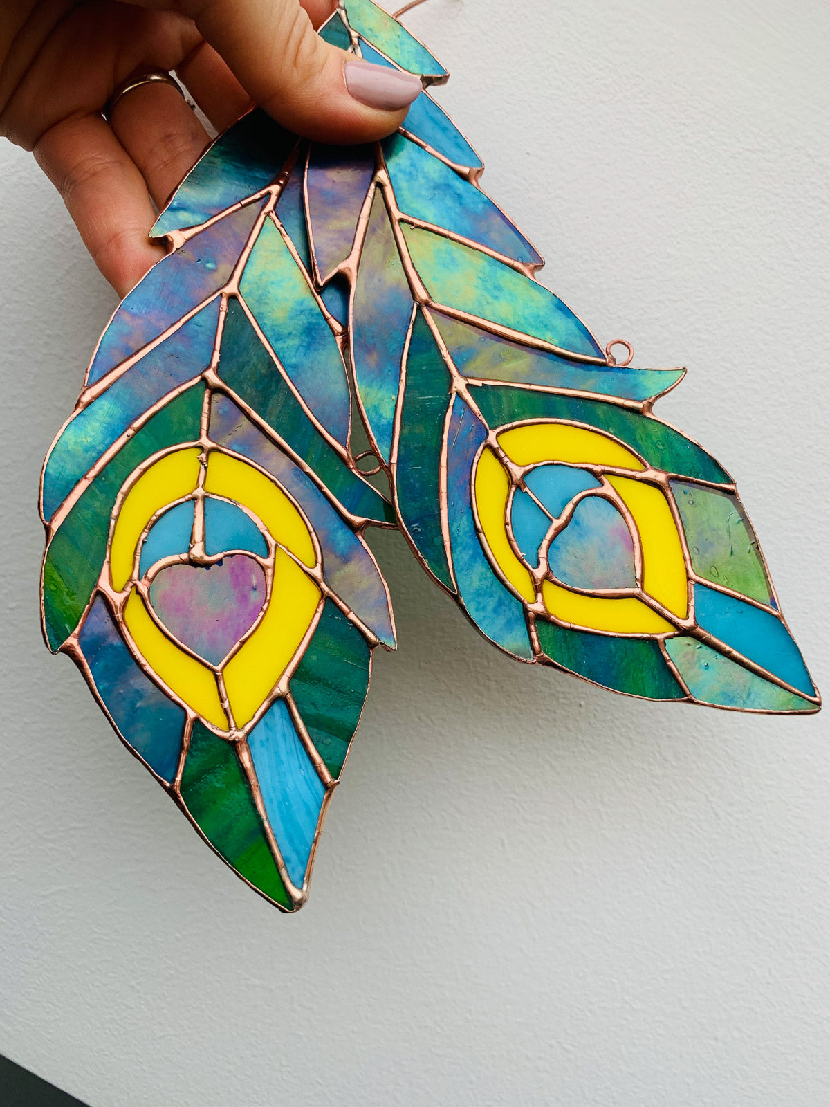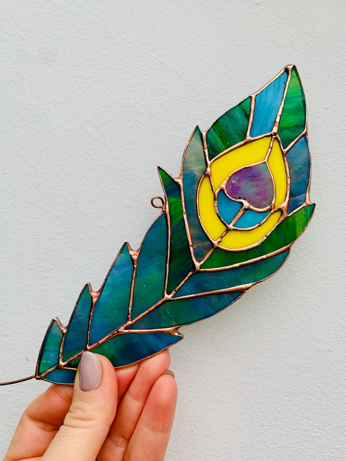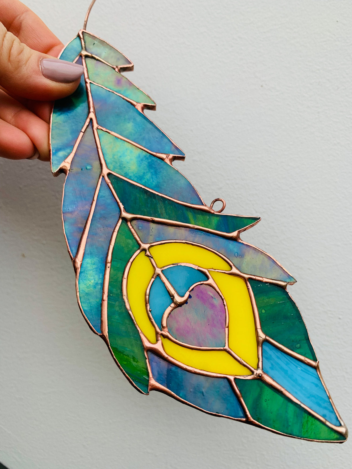 Zawieszka piórko jest lekka i delikatna, a jednocześnie bardzo trwała dzięki solidnemu wykonaniu. Można ją powiesić na przezroczystej żyłce, którą dołączamy do dekoracji.W wielu kulturach pióra pawia uważane są za symbole ochrony, władzy i dostatku.Jeśli szukasz pięknej i unikalnej dekoracji, która ożywi Twoje wnętrze, to piórko witrażowe jest idealnym wyborem dla Ciebie.Zapraszamy do zakupu naszych witrażowych ozdób i odkrycia magii szkła w swoim domu.