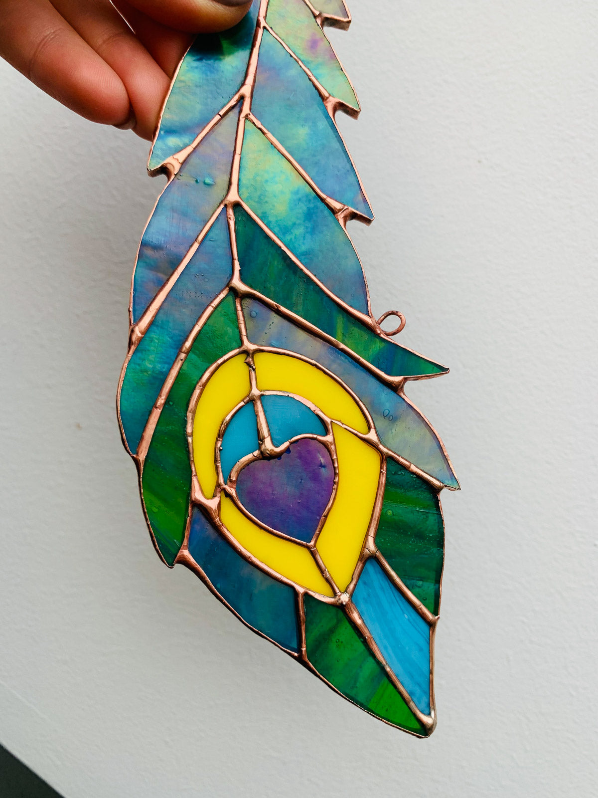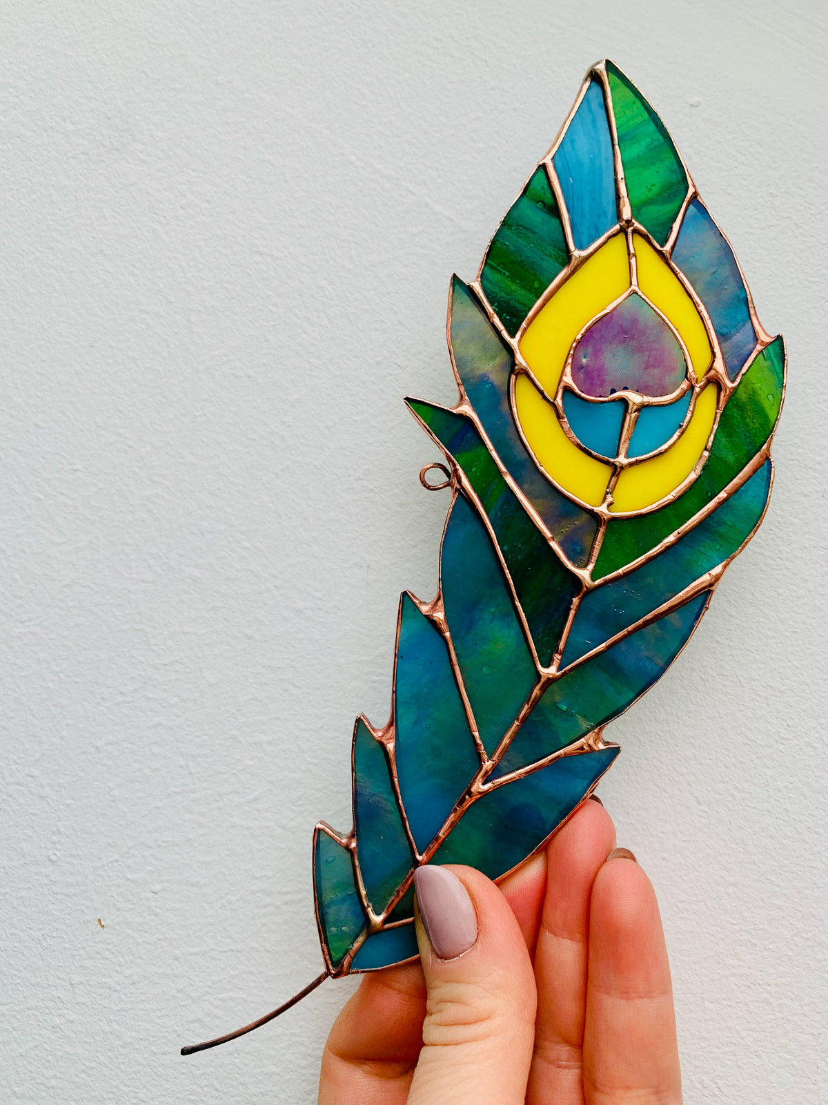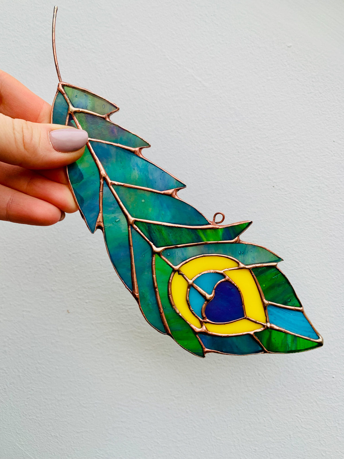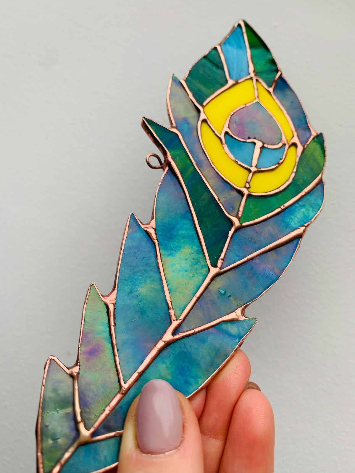 Zawieszka piórko jest lekka i delikatna, a jednocześnie bardzo trwała dzięki solidnemu wykonaniu. Można ją powiesić na przezroczystej żyłce, którą dołączamy do dekoracji.W wielu kulturach pióra pawia uważane są za symbole ochrony, władzy i dostatku.Jeśli szukasz pięknej i unikalnej dekoracji, która ożywi Twoje wnętrze, to piórko witrażowe jest idealnym wyborem dla Ciebie.Zapraszamy do zakupu naszych witrażowych ozdób i odkrycia magii szkła w swoim domu.