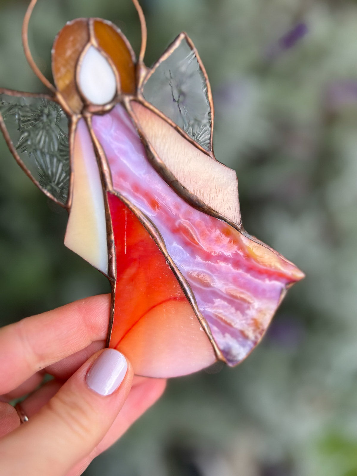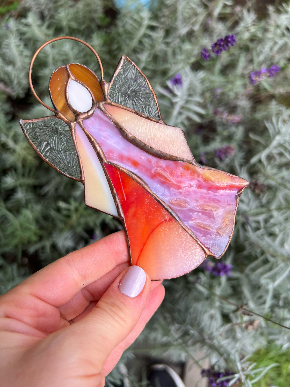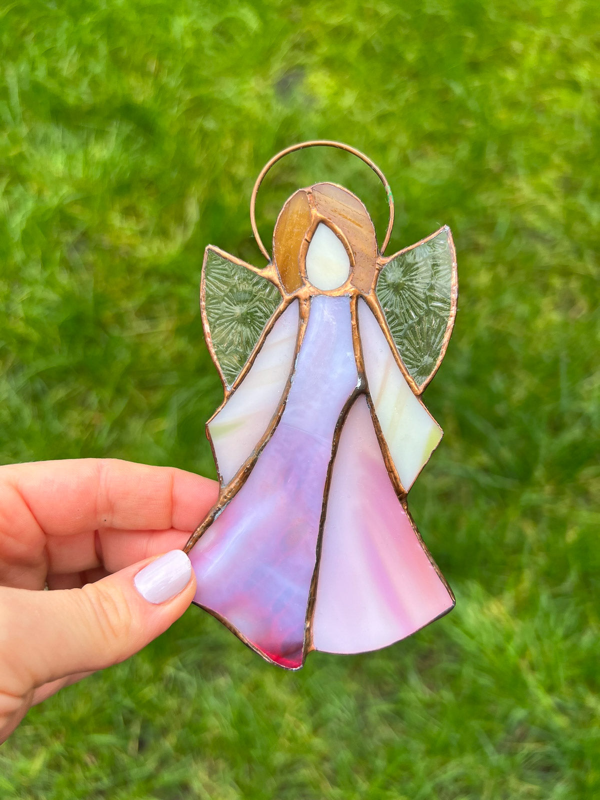 Aniołek został starannie wykonany z dbałością o każdy detal, a jego skrzydła nadają mu delikatności i lekkości. To wspaniały prezent dla bliskiej osoby lub dekoracja domu. Nadaje się również na prezent ślubny lub chrzest. Efektownie będzie wyglądał w oknie, jak i zawieszony na ścianie.Uwaga! Kolory i odcienie mogą delikatnie różnić się od tych przedstawionych na zdjęciach, ze względu na to, że każdy witraż jest ręcznie tworzony z niepowtarzalnych kawałków szkła witrazowego, co nadaje mu własny, niepowtarzalny charakter i urok.