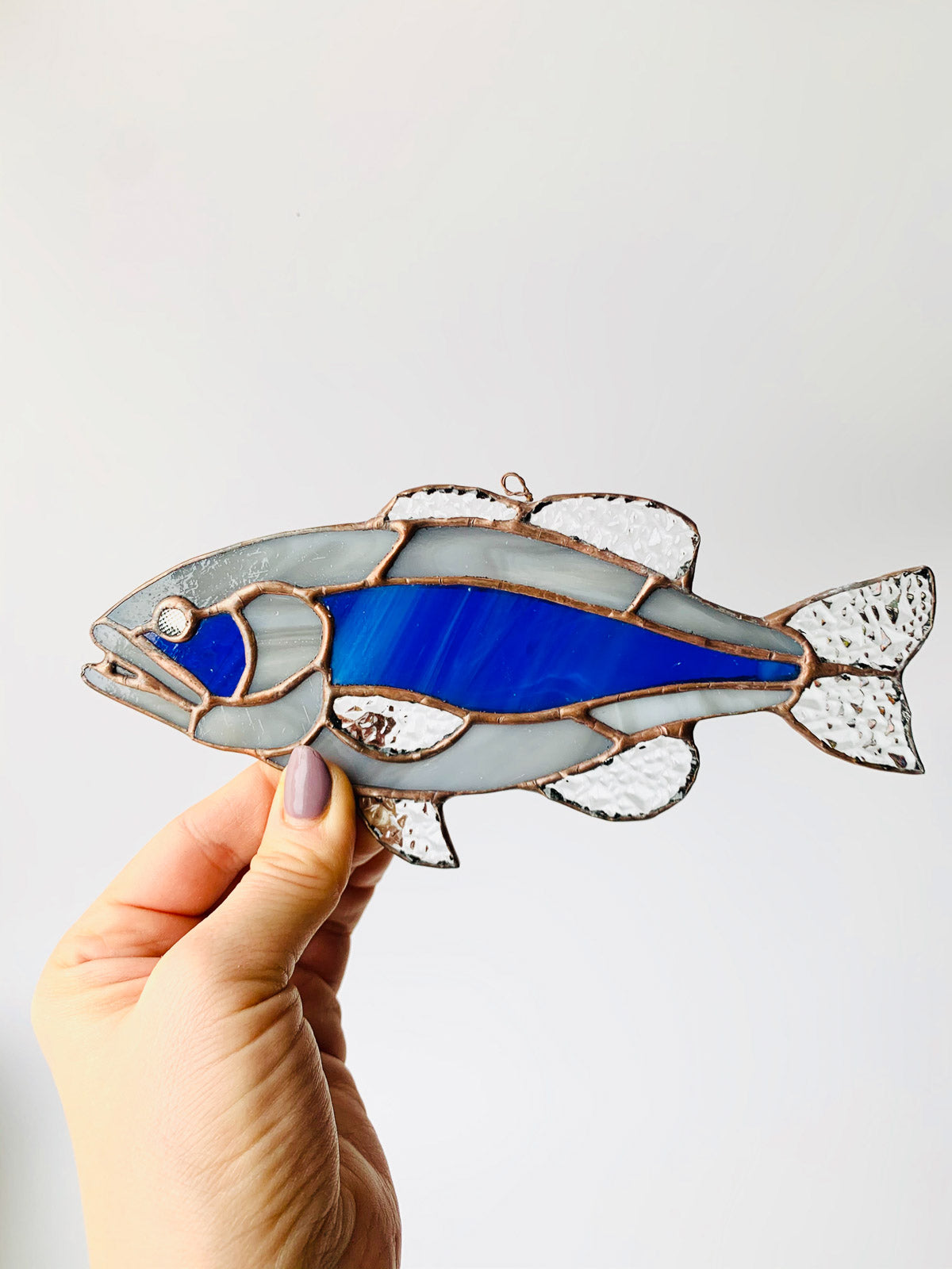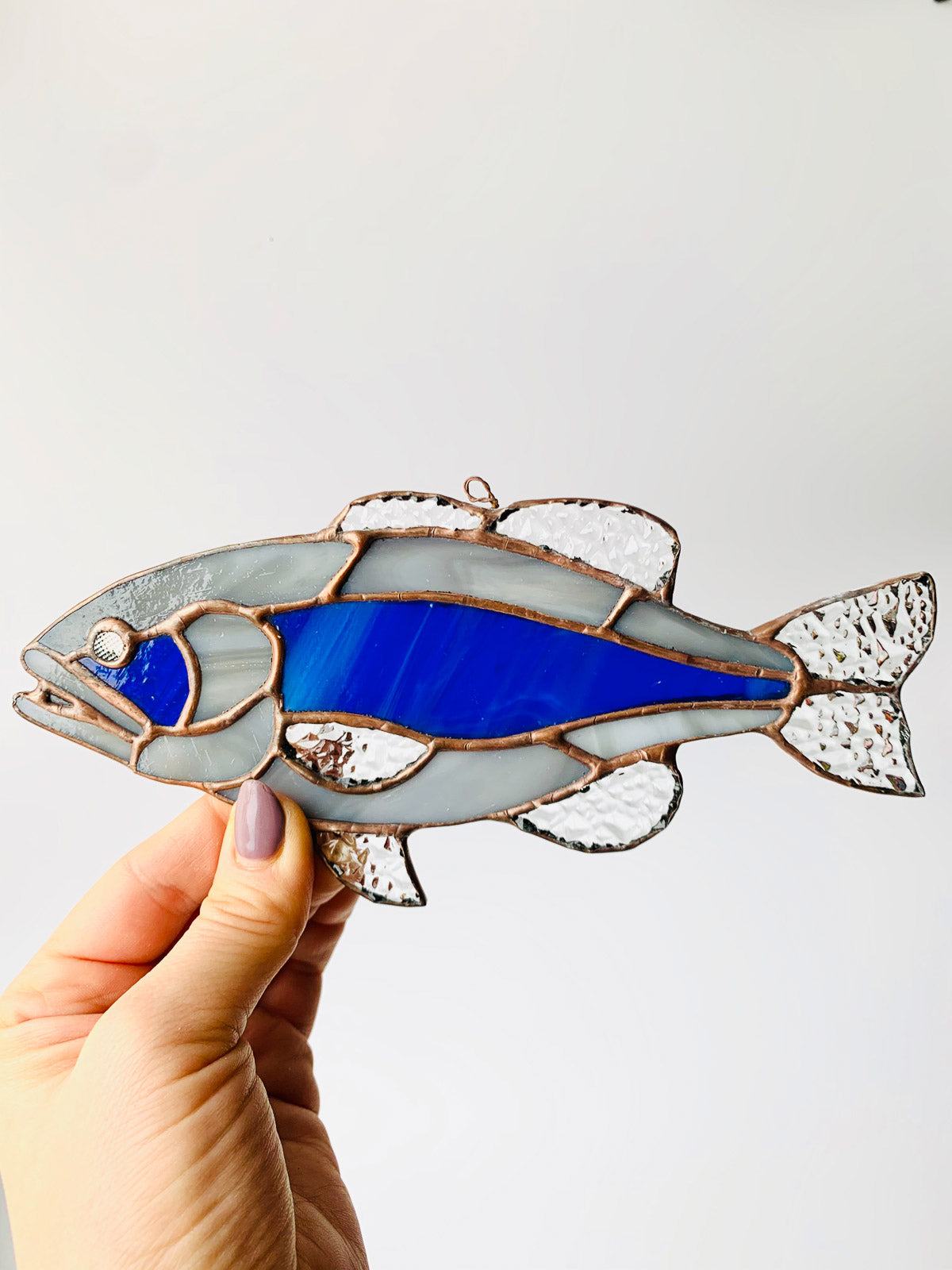 Prezentujemy oryginalną zawieszkę w kształcie ryby wykonaną metodą Tiffany'ego. Zawieszka ta to niepowtarzalna ozdoba, która doskonale wpasuje się w aranżację łazienki lub innych pomieszczeń.Każdy detal witrażowej ryby został wykonany z najwyższą starannością i precyzją, co daje gwarancję nie tylko na piękny wygląd, ale także trwałość i wytrzymałość na długi czas. To propozycja dla osób, które cenią sobie oryginalne rozwiązania i chcą wyróżnić swoje wnętrze.