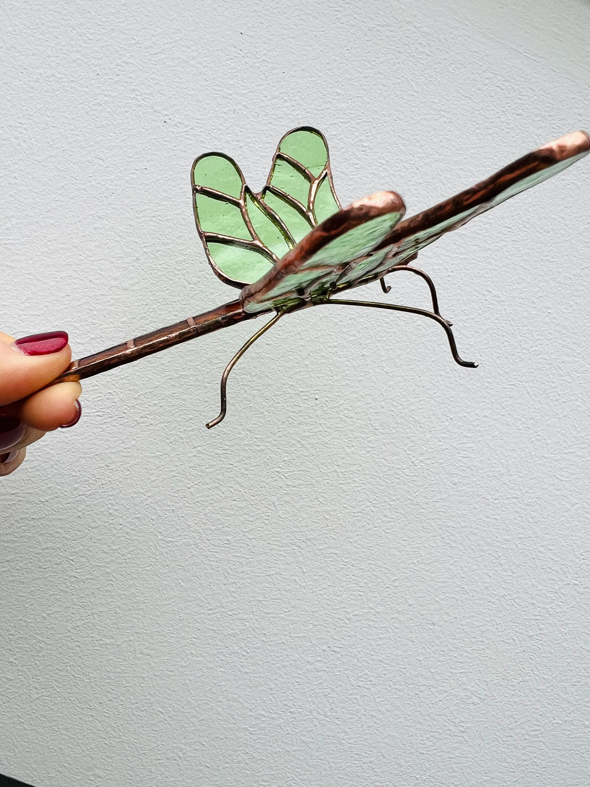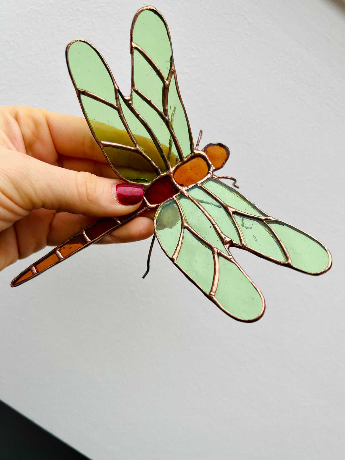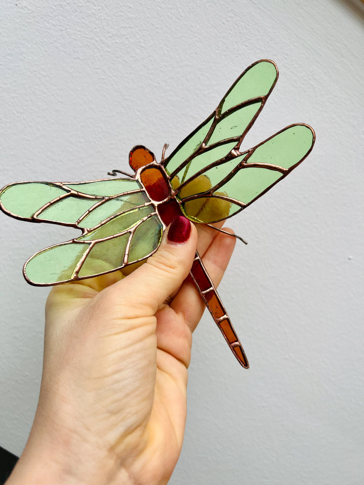 Ta szklana ważka to prawdziwe dzieło sztuki, wykonane z dbałością o najmniejsze detale. Jej delikatne skrzydła i wyjątkowe wzornictwo zostały stworzone wykorzystując technikę Tiffany.Możesz umieścić ją na stole, komodzie, półce czy biurku, dodając subtelny, ale efektowny element dekoracyjny, który przyciągnie uwagę i wzbogaci wystrój wnętrza.Ważka witrażowa jest wykonana z najwyższej jakości szkła witrażowego, które pięknie odbija światło, tworząc efektowne refleksy i grę kolorów. Jej subtelne barwy i elegancki design sprawiają, że doskonale komponuje się z różnymi stylami wnętrz, od nowoczesnych po klasyczne.Ta dekoracja w kształcie ważki jest nie tylko estetycznym dodatkiem, ale również doskonałym prezentem dla miłośników sztuki, natury i piękna. Może stanowić piękny podarunek na różne okazje, takie jak urodziny, święta czy jubileusze.