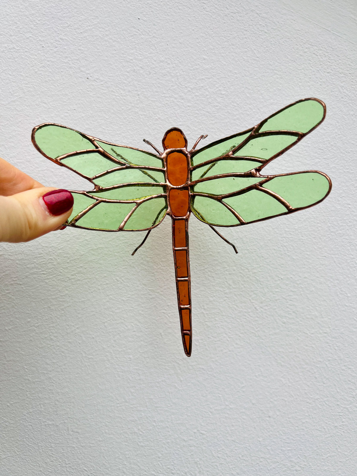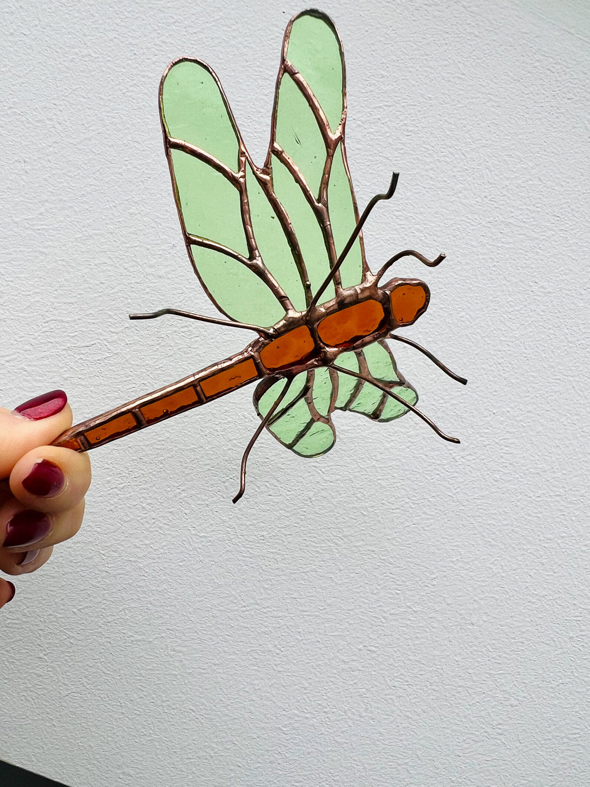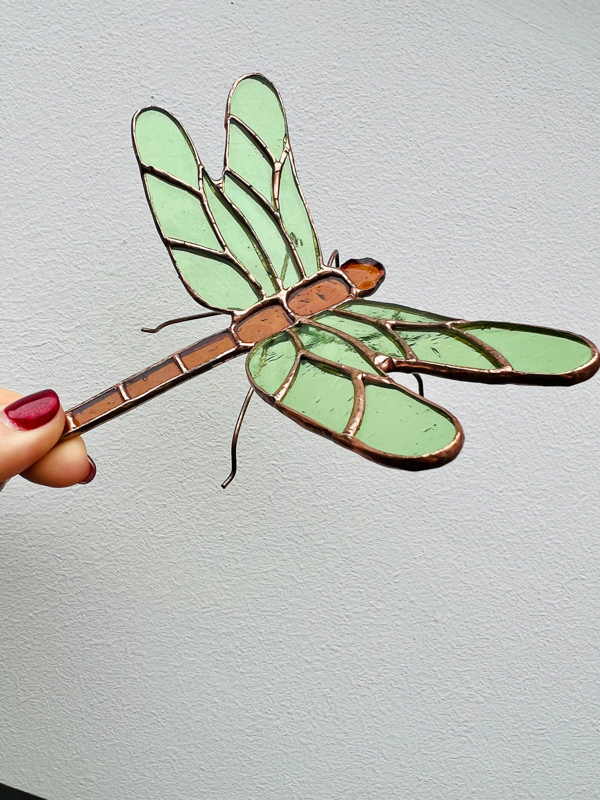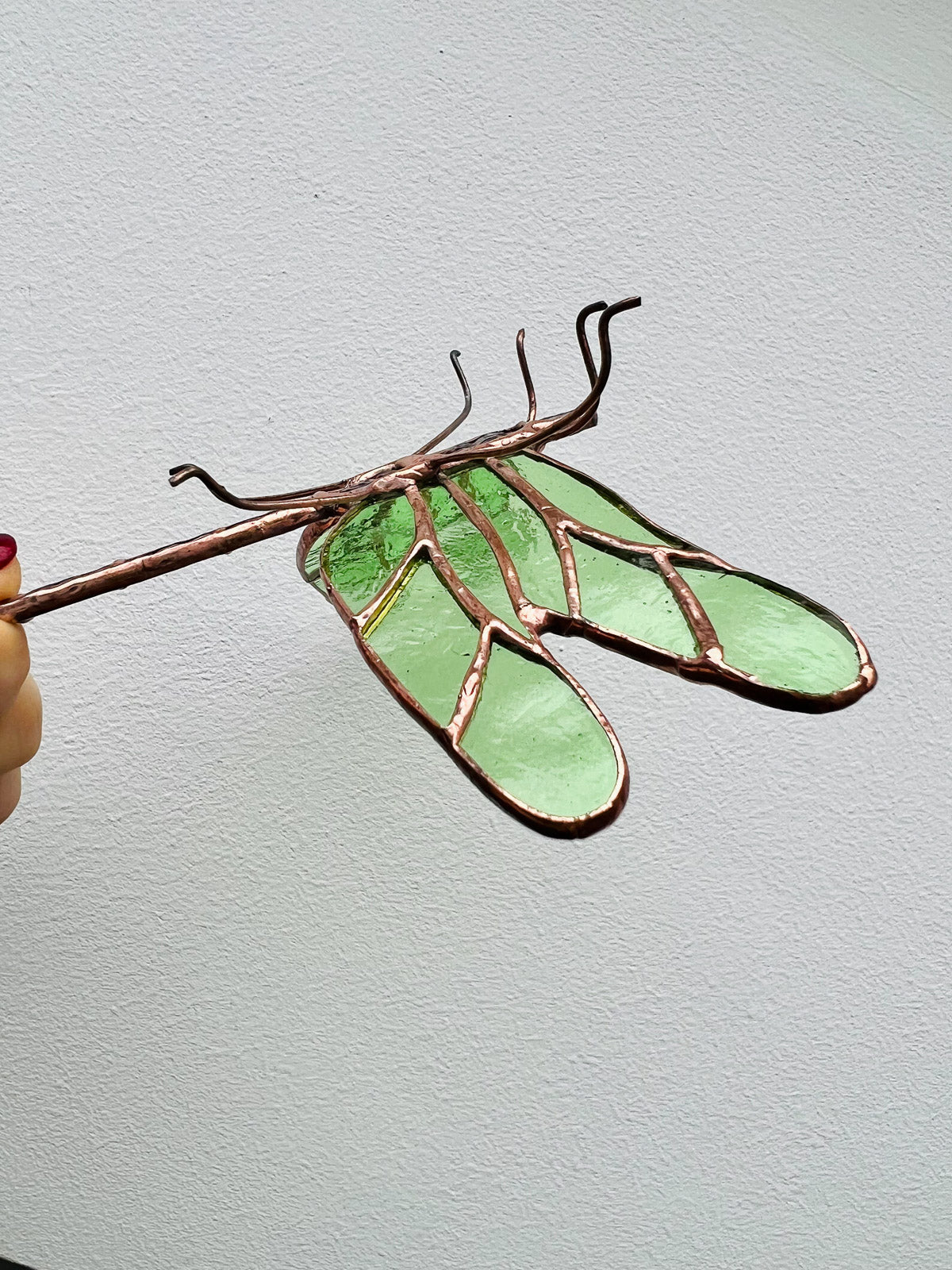 Ta szklana ważka to prawdziwe dzieło sztuki, wykonane z dbałością o najmniejsze detale. Jej delikatne skrzydła i wyjątkowe wzornictwo zostały stworzone wykorzystując technikę Tiffany.Możesz umieścić ją na stole, komodzie, półce czy biurku, dodając subtelny, ale efektowny element dekoracyjny, który przyciągnie uwagę i wzbogaci wystrój wnętrza.Ważka witrażowa jest wykonana z najwyższej jakości szkła witrażowego, które pięknie odbija światło, tworząc efektowne refleksy i grę kolorów. Jej subtelne barwy i elegancki design sprawiają, że doskonale komponuje się z różnymi stylami wnętrz, od nowoczesnych po klasyczne.Ta dekoracja w kształcie ważki jest nie tylko estetycznym dodatkiem, ale również doskonałym prezentem dla miłośników sztuki, natury i piękna. Może stanowić piękny podarunek na różne okazje, takie jak urodziny, święta czy jubileusze.